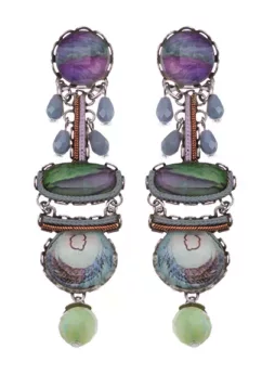 Lavendar Fields, Tacovanda Earrings 融合了淡淡的蓝色、紫色、靛蓝和翡翠,以及银色、黄铜和金属合金的光泽。它们如舞者的优雅舞步,在您的耳朵上绽放出奇异的光芒。玻璃珠、陶瓷石和水晶水钻的闪烁,为耳环增添了独特的魅力,令人屏息。