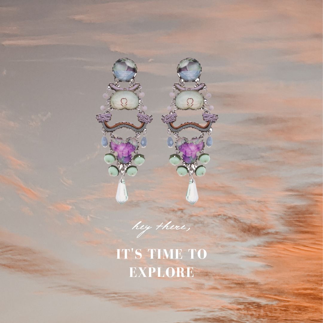 Ayala Bar,让您的耳朵感受到艺术的触感。无镍、无铅、无危险物质,100%手工制作,每一件耳环都是独一无二的艺术品。让我们一同沉浸在这美景中,感受大自然的恩赐,蓝色、紫色、白色、粉色,和银色叶子的诗意结合。让Ayala Bar的耳环成为您展现个性鲜明的时尚配饰,让您绽放出独特的魅力。
